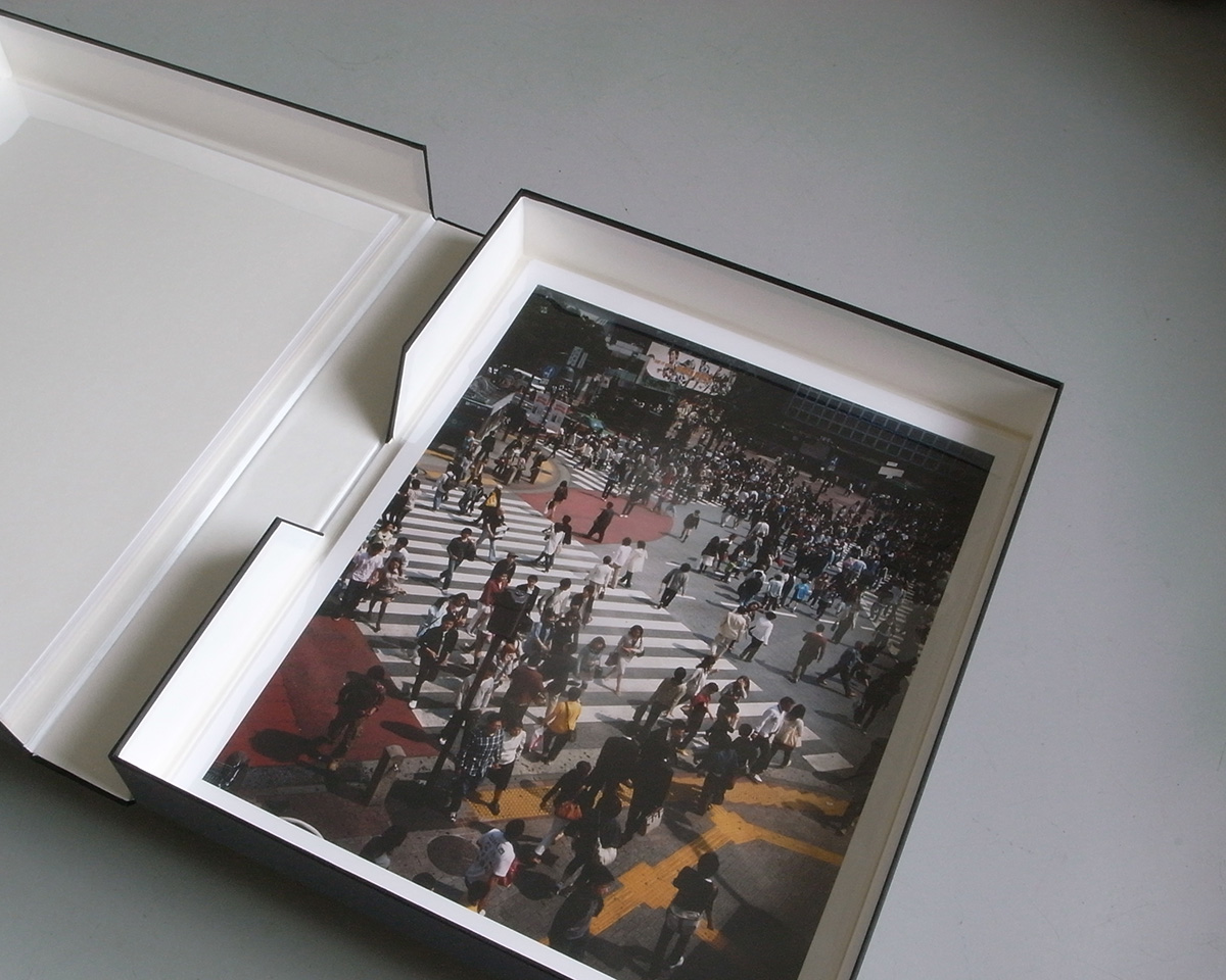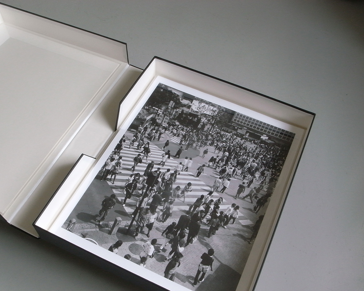 The portfolio comes with an original negative and a set of nine interpretations of that same negative by nine different printers, each made without any indications from the artist. The variations between the prints express the latitude between a matrix (the negative) and various interpretations of that matrix (the prints, which are all quite different) expressing the space for singularity within the analog photographic process.