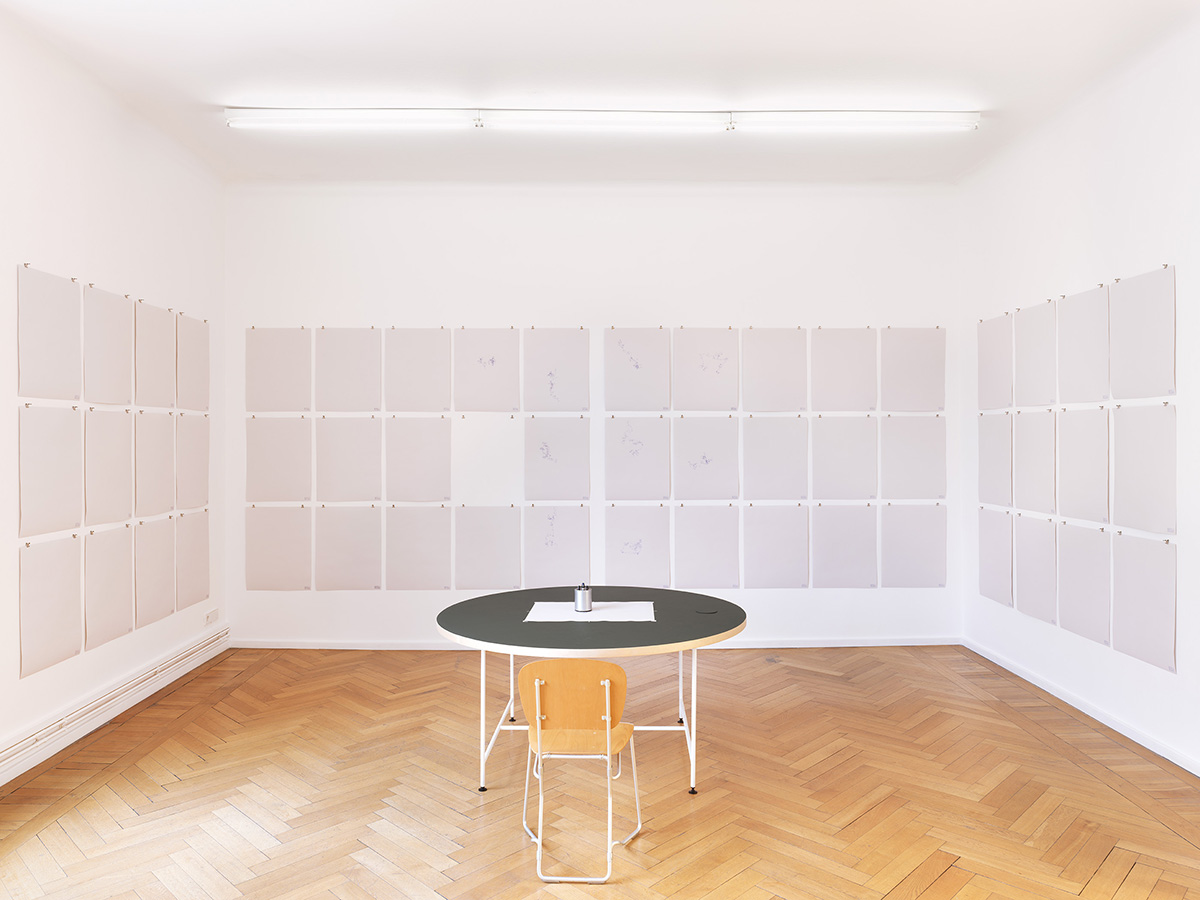 The drawings created in the context of this exhibition are archived alongside materials from previous renditions of the project, contributing to an ever-expanding collection that delves into the interplay of mind and matter while probing notions of randomness and belief. With the aim of achieving a much larger sample size than the prematurely-cancelled original experiment, the cumulative archive of drawings, along with a protocol for their display and further experiments, constitutes the work “What It Is Of.”
